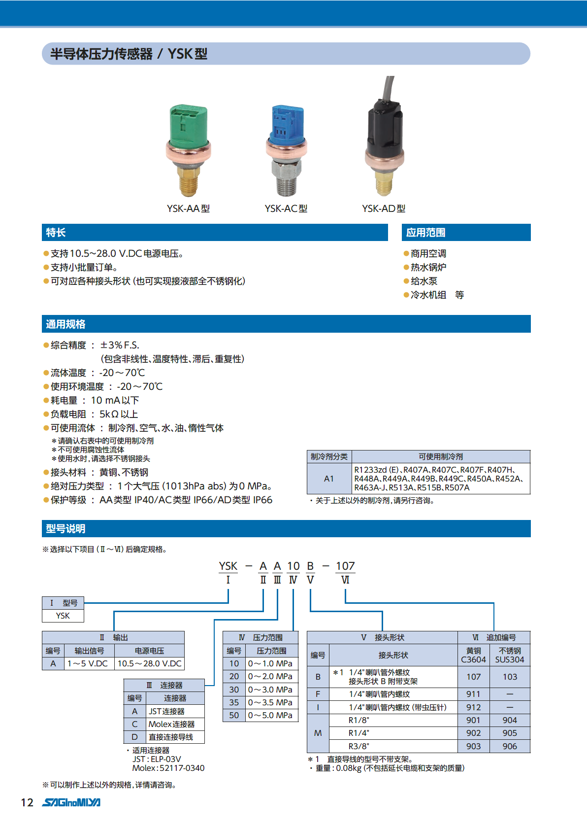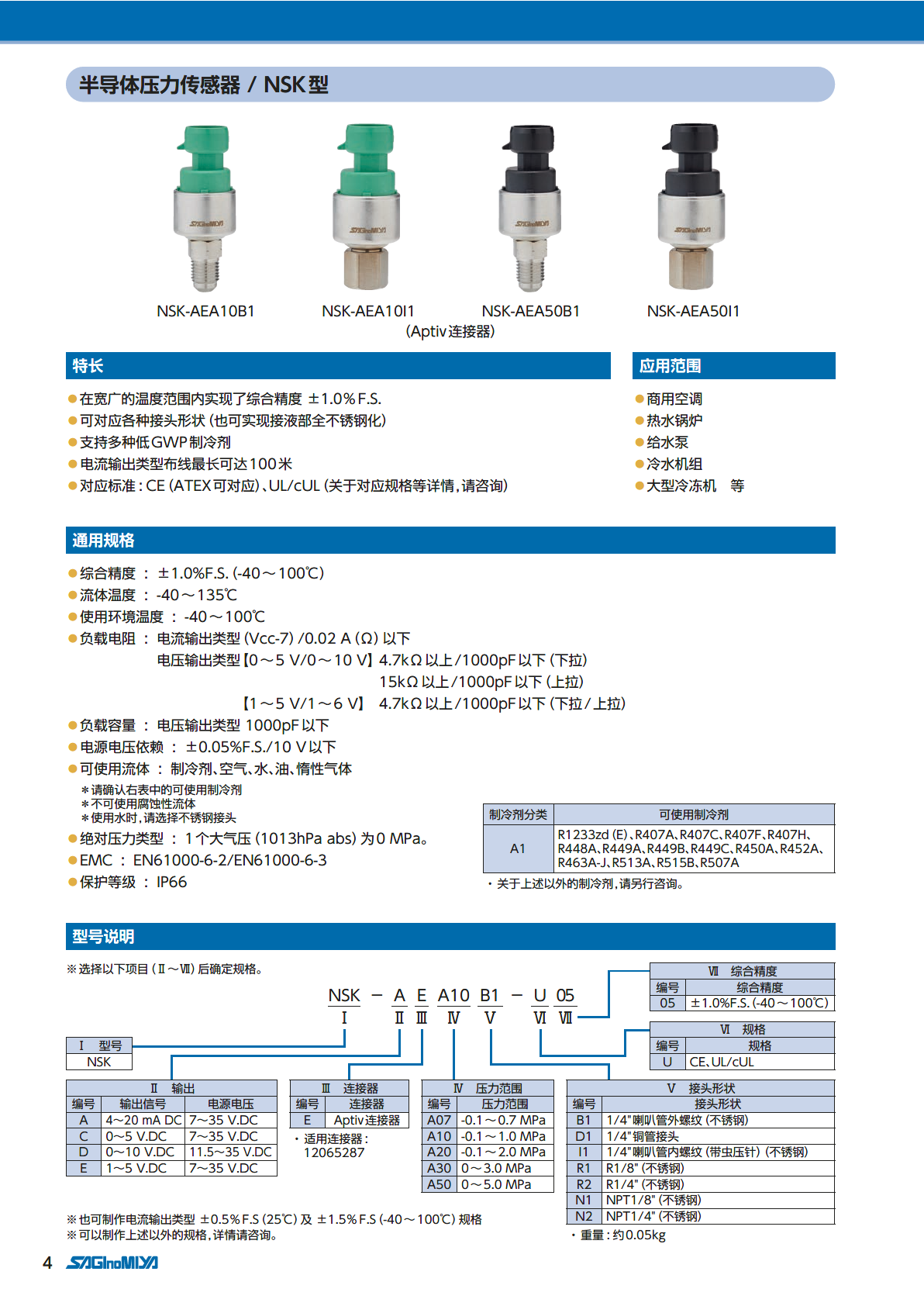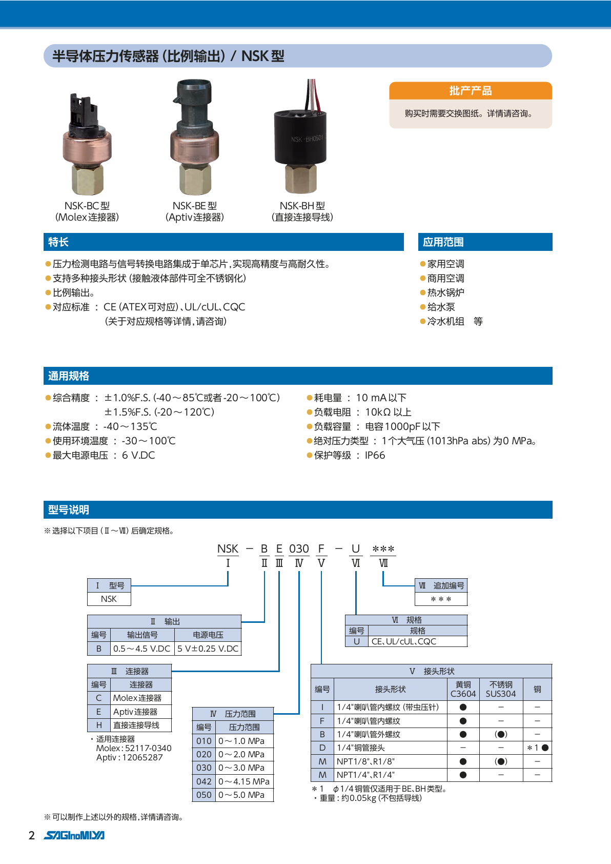 NSK / XSK / YSK 壓力傳感器-SAGInoMIYA鷺宮