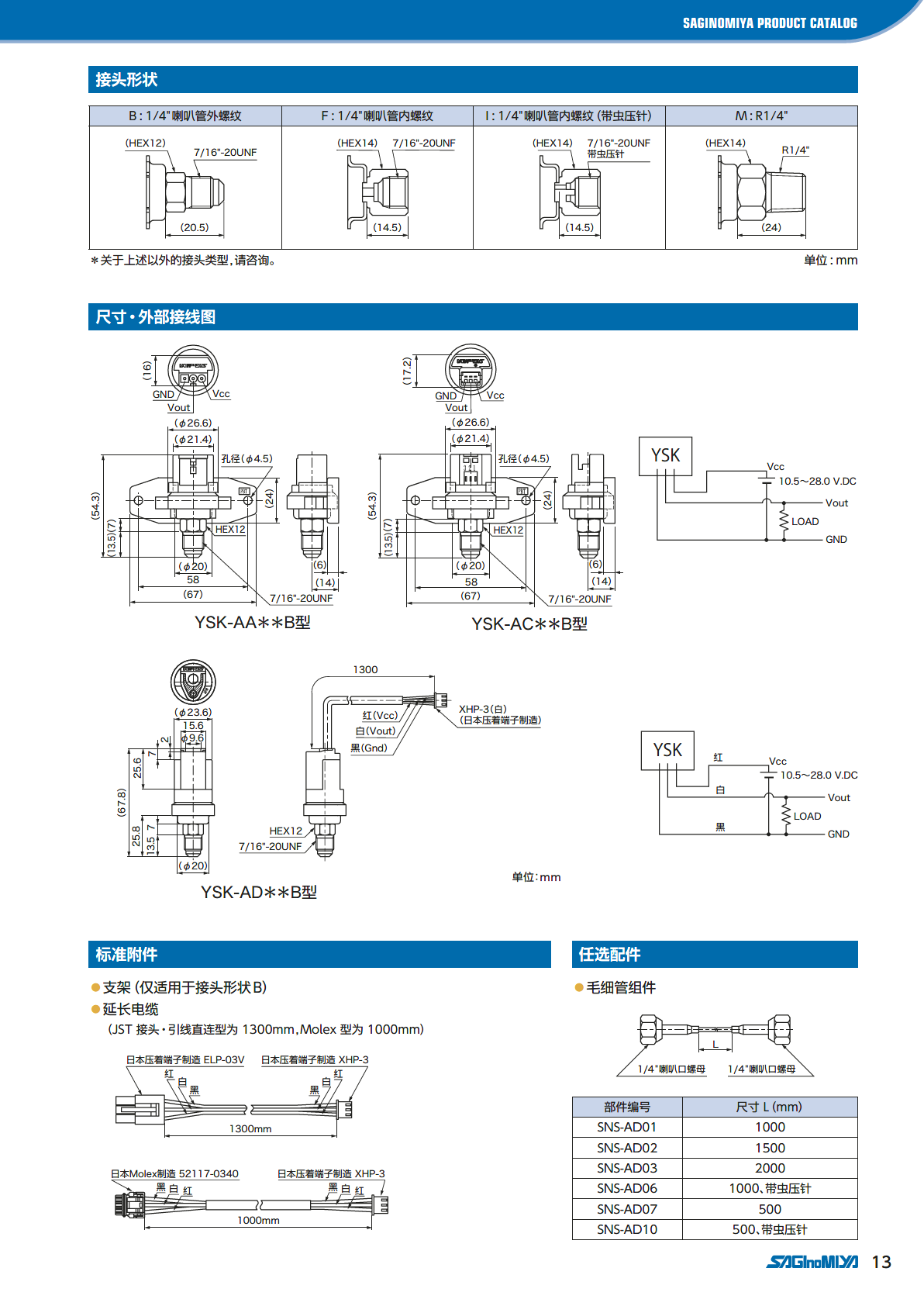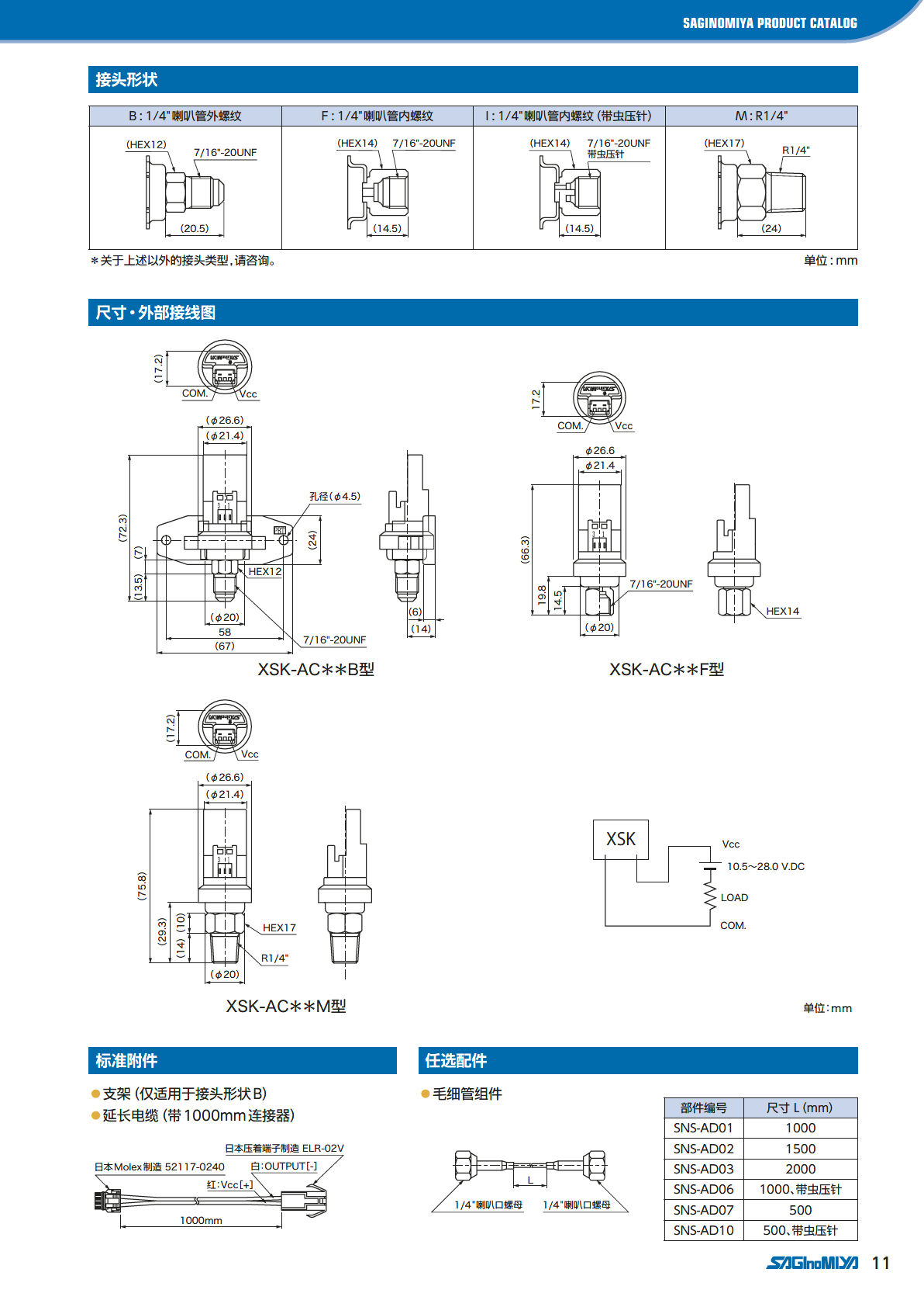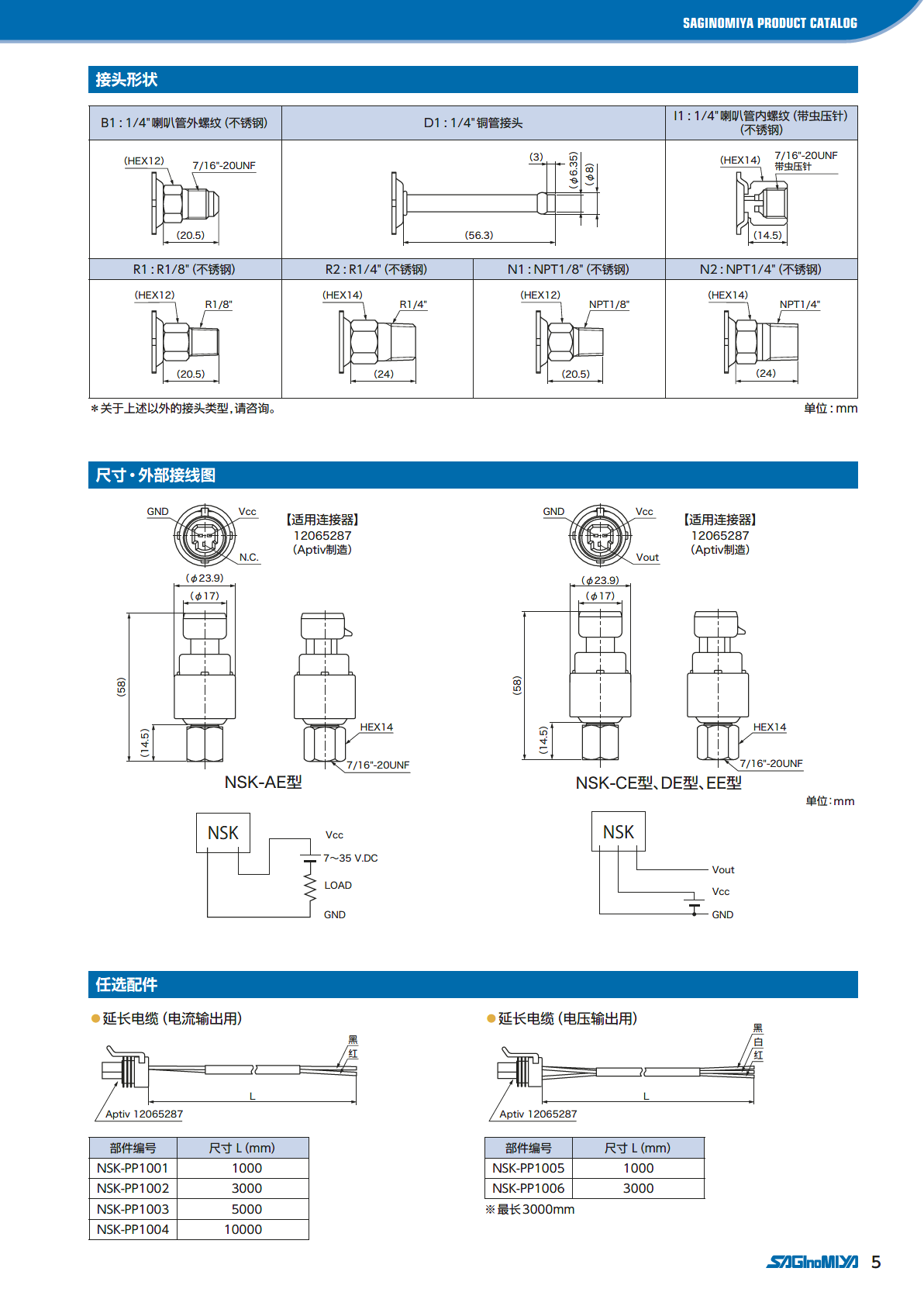 NSK/XSK/YSK壓力傳感器具有高可靠性和精度,支援多種接頭形狀。